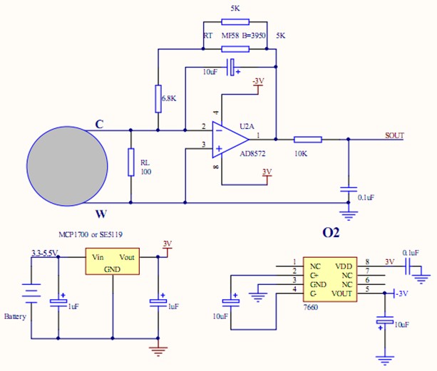 雙電極電化學傳感器應用電路Dual electrode electrochemical sensor application circuit三電極電化學傳感器應用電路(零偏壓)Three electrode electrochemical sensor application circuit(zero bias)電化學氧氣氣體傳感器(0~25%)Electrochemical oxygen gas sensor(0~25%)