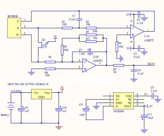 雙電極電化學傳感器應用電路Dual electrode electrochemical sensor application circuit三電極電化學傳感器應用電路(零偏壓)Three electrode electrochemical sensor application circuit(zero bias)電化學氧氣氣體傳感器(0~25%)Electrochemical oxygen gas sensor(0~25%)